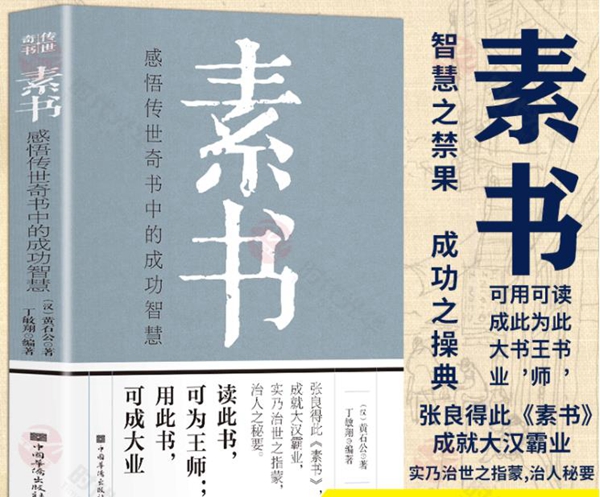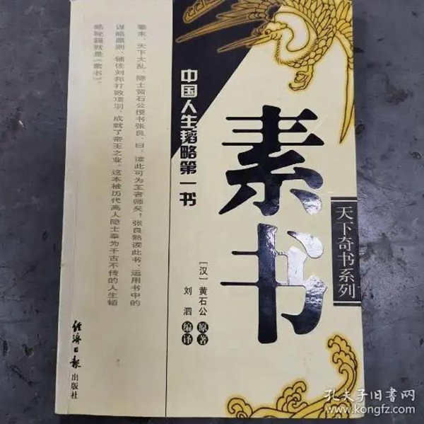 一日,黄石公在圯上(圯,即桥)与张良相遇,便以拾鞋(即古书上说的纳履)方式试张良,看到张良能屈人所不能屈,忍人所不能忍,知道他胸怀开阔,将来必有一番抱负,绝非是人下之小人,遂以《素书》相赠。此书共一千三百三十六言,分原始正道、求人之志、本道、宗道、遵义、安礼六篇。书中语言明贵,字字精当,张良爱不释手,秉烛细读,大悟大彻,心领神会,没多少天,便把一本《素书》从头到尾背得滚瓜烂熟。后来,张良做了刘邦的谋士,佐高祖定天下、兴汉邦,大部分运用《素书》中的知识。久而久之,这段故事越传越神,《素书》也就被后来人说成了“天书”。《史记·留侯世家》即《圯上老人》良(张良)尝从容步游于下邳1圯2上,有一老父,衣褐,至良所,直堕其履圯下,顾谓良曰:“孺子,下取履!”良愕然,欲欧3之,为其老,强忍,下取履。父曰:“履我!”良业为取履,因长跪履之。父以足受,笑而去。良殊大惊,随目之。父去里所,复还,曰:“孺子可教矣。后五日平明,与我会此。”良因怪之,跪曰:“诺。”五日平明,良往。父已先在,怒曰:“与老人期,后,何也?”去,曰:“后五日早会。”五日鸡鸣,良往。父又先在,复怒曰:“后,何也?” 去,曰:“后五日复早来。”五日,良夜未半往。有顷,父亦来,喜曰:“当如是。”出一编书,曰:“读此则为王者师矣。后十年兴,十三年孺子见我济北4,谷城山5下黄石即我矣。”遂去,无他言,不复见。旦日视其书,乃《太公兵法》6也。良因异之,常习诵读之。