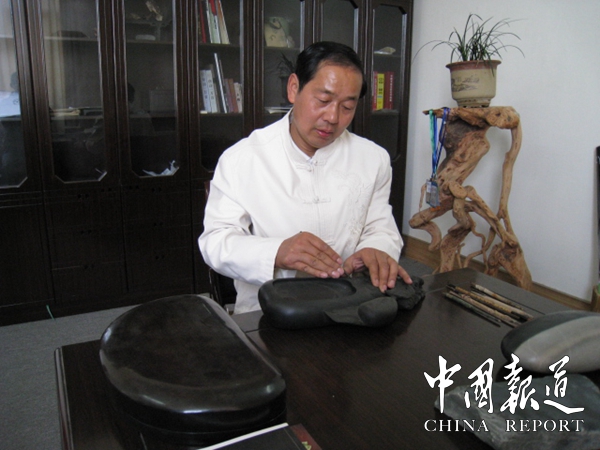 时常想起庙前青 庙前青没能继续开采,胡秋生有些遗憾,可没有停止前进的脚步,而是虚心向师傅们学习,钻研砚台雕刻技艺,各方面进步都比较快,前前后后曾任仿古组组长,车间主任和厂里的团干。