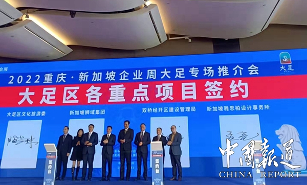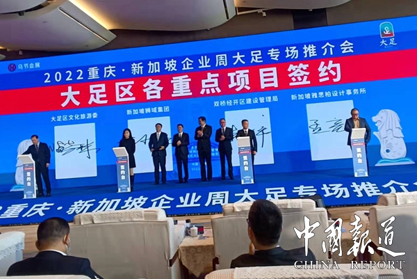 中国报道讯(吴蜀丰报道)10月31日,由重庆市中新示范项目管理局、重庆市大足区人民政府主办,重庆市大足区招商投资促进局、重庆市双桥经济技术开发区招商投资促进局协办,重庆市双桥经济技术开发区建设管理局和乌节会展(杭州)有限公司承办的“2022年重庆■新加坡企业周大足专场推介会”10月31日在重庆来福士洲际酒店如期举办。
