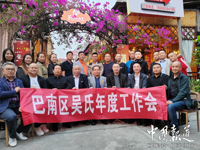 会上,参会代表分别就巴南吴氏企业如何抱团发展各抒己见,会后集体合影。