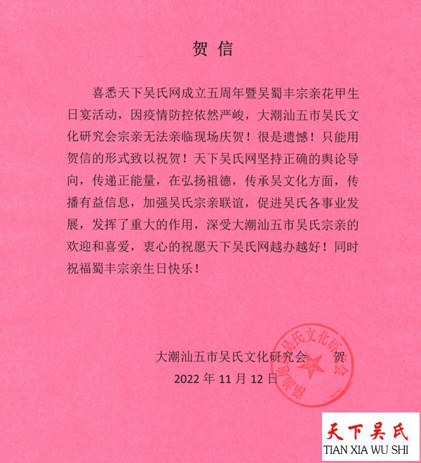 大潮汕五市吴氏文化研究会祝天下吴氏网五周年