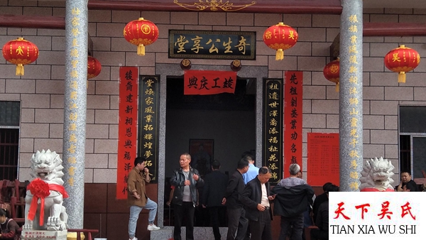 各公支代表、外祖巫氏亲友代表、各姓氏乡邻代表厚礼相送,共同庆祝奇生公享堂吿竣。奇生公后裔在各行各业努力拼搏,人才辈出。个个都在为国家的发展,吴氏宗族的兴旺发达奉献自己的力量。展现了中华民族大团结精神,充分彰显了“吴氏一家亲”的精神。