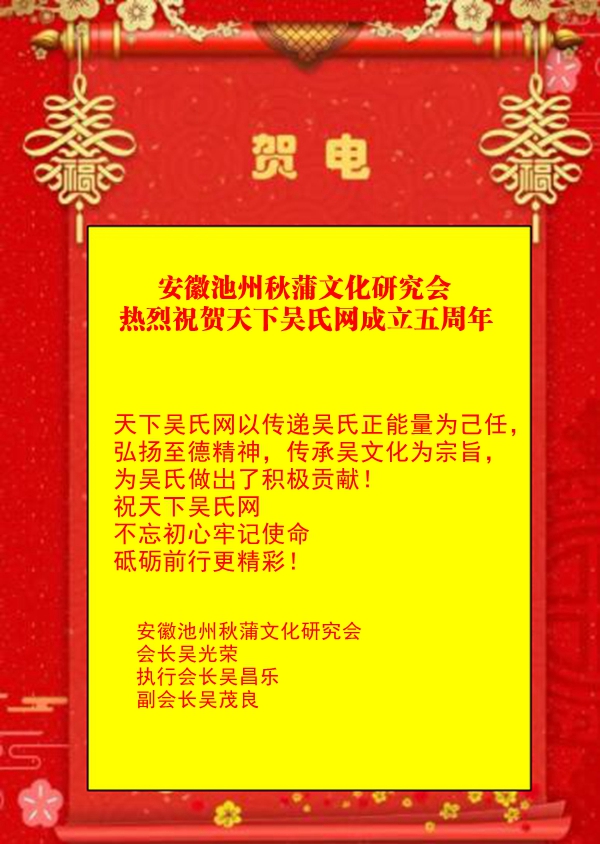 安徽池州秋蒲吴文化研究会热烈祝贺天下吴氏网成立五周年