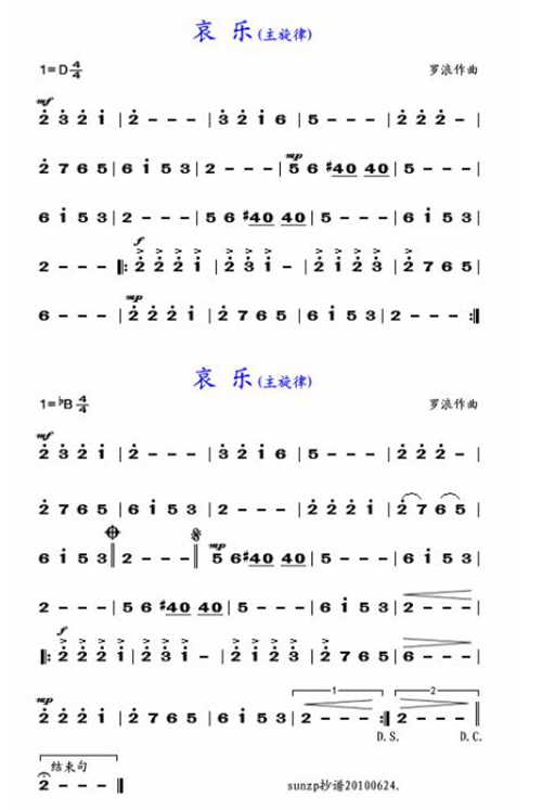 中华人民共和国成立后,创作和改编了数十首军乐曲和礼乐曲。如《东方红》、《中国人民解放军进行曲》、《军队进行曲》、《分列式进行曲》、《航空员进行曲》、《军歌联奏》、《哀乐》等。其中部分选辑于《抗日战争歌曲集》,1950年已录制成唱片。其中,《哀乐》是罗浪影响最广、最优秀的作品之一,那是他根据北方一首民间吹打乐曲调改编而成的。《哀乐》首次演奏是1945年在张家口悼念阵亡烈士的典礼上;1949年在天安门广场举行人民英雄纪念碑奠基仪式,中央批准正式作为国家葬礼乐曲。中央人民广播电台发布讣告之前,首次完整地将《哀乐》播放全国。”自此,《哀乐》一直沿用。且罗浪曾为《解放军进行曲》《三大纪律八项注意》《东方红》等乐曲改编和配曲。