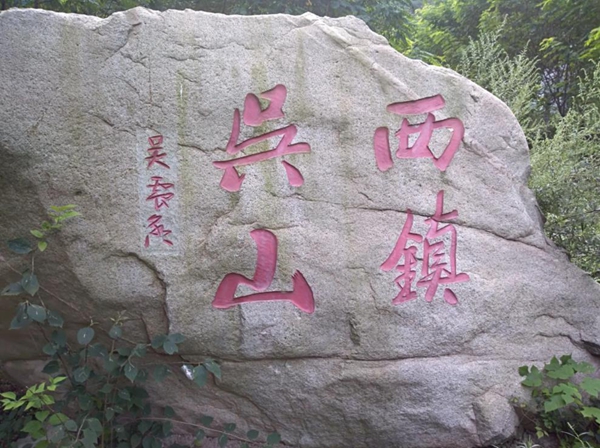 吴山 又名吴岳,亦名岳山,古为五镇之一,又称西镇。北依陇县,西傍赤沙、香泉,南接上王,东畔宝(鸡)平(凉)公路。山上有峰十七,以镇西峰、大贤峰、灵之峰、望辇峰、会仙峰为冠。有诗云:“碧殿红楼绮平空,镇安西土命神功。五峰高出擎仙掌,一山中水挂玉虹。春雨近时紫草遍,暖烟深处碧桃浓。圣朝表正吴山号,礼乐昭明万古崇。”《山海经》云:“吴山之峰,秀出云霄,山顶相捍,望之常有落势,其位西方,故曰西镇。”据《陇县续志》载,隋开皇十六年(596)正月,始在吴山建造庙宇。唐天宝八年(749),封吴山为“成德公”;至德间封为“天岳王”。后唐清泰二年(935)封为“灵应王”。元大德十一年(1307)封为“成德永靖王”。明洪武三年(1370),直称曰“西镇吴山之神”。清康熙四十二年(1703)四月,钦颁宸翰额曰“五峰挺秀”。历代封建帝王登基,均遣官致祭。