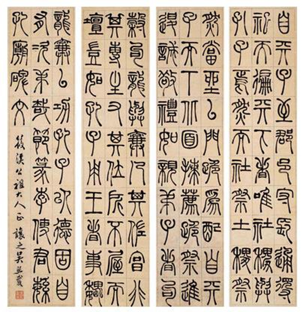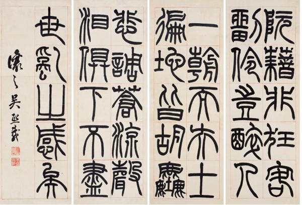 作为一位博学多能的艺术家,吴让之早年师从邓石如(完白山人)的学生包世臣学书,故为邓石如的再专弟子。在包世臣反对流弊较大的“馆阁体”开辟晚清一代新风中,吴让之无疑是一倾力助阵者。吴昌硕说吴让之“书画下笔谨严,风韵之古俊者,不可度,盖有守而不泥其迹,能自放而不逾其矩。治印……刀法圆转,无纤曼之习,气象骏迈,质而不滞”,乃非虚饰之言。