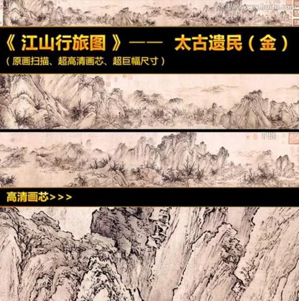 吴宏 秋山行旅图【名称】清 吴宏 秋山行旅图(部分)【年代】清代【简介】长卷,纸本,设色,纵23.5厘米,横1242厘米。此图画山重水复,山石岐螬,村庄屋字依山傍水,错落俨然于树丛,赶路的车队,人马也匆匆于道上。笔墨纵横,风格绢秀。