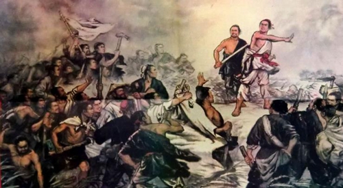 陈胜铿锵有力的一番话,说出了大伙的心声,戎卒们对秦王朝的满腔怨恨和愤怒如同冲溃了堤坝的洪水奔泻而出,齐声高呼:“我们愿听从您的号令!” 于是大伙在陈胜、吴广带领下,袒露右臂作为标志,筑坛盟誓,按事先谋划,诈以公子扶苏、楚将项燕之名,宣布起义。 陈胜自立为将军,以吴广为都尉,一举攻下大泽乡,迅速攻下蕲县县城。 中国历史上第一次大规模的农民起义战争爆发了。