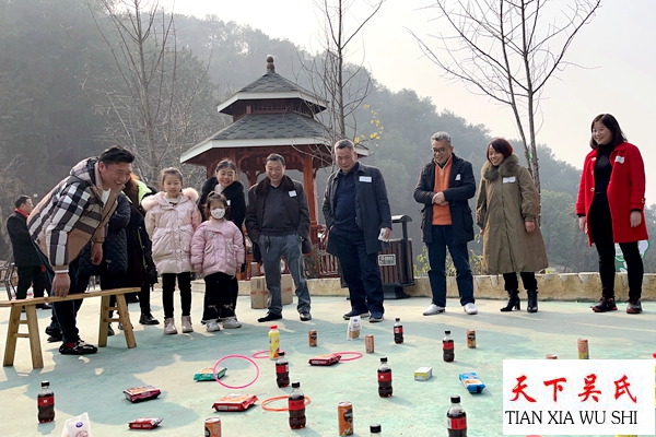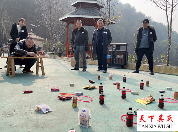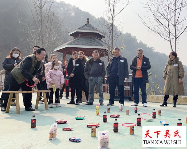 “三让天下孔子赞,泰伯高风旷古今,天上有口言守信,口下是天志凌云,至德万代万代传……”大家齐唱《天下吴氏一家亲》,杀年猪吃刨猪汤,拎一块肉带回家,现场直播互动及丰富多彩的娱乐活动为新春团拜会增添喜  气洋洋的氛围,近3个小时的人人参与“丢套圈赢礼品”游戏活动成为新春团拜会重头戏之一,有关《吴文化知识》知识问答有奖活动不仅让参与者丰富了知识层面,同时也增强了团拜会的凝聚力。