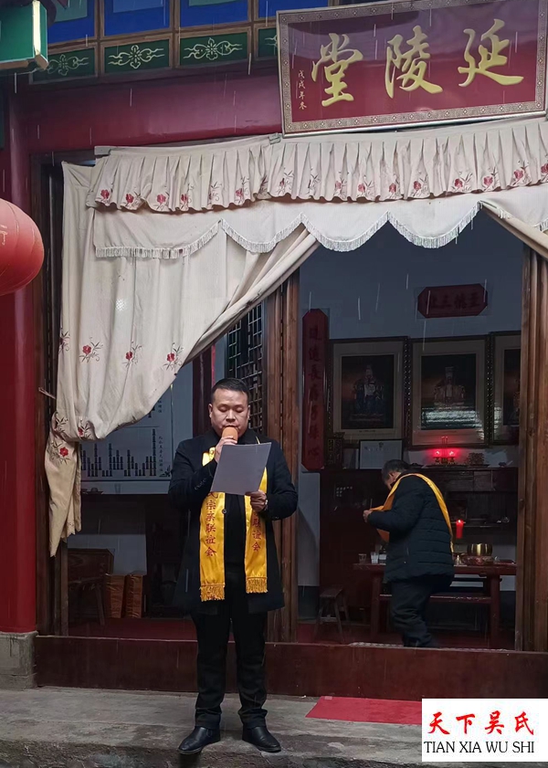 孔子说,不忘先人,追念先人,是为了后人更加腾达,是为了宗族更加兴旺。尊敬的宗亲们,在当今中国,有中国共产党的正确指引,以二十大精神为指南,在这个美好的新时代,吴氏宗族的发展历程告诉我们,只有自强不息才能把握命运,只有与时俱进才能紧跟时代,只有勤劳勇敢才能创造幸福,只有艰苦奋斗才能兴旺家族!莫道今年春将尽,明年春色倍还人。让我们携起手来,热烈欢呼吴氏家族发展史上又一个春天的到来,为我们吴氏族人活得更幸福、更有尊严、更有成就感而不懈努力!