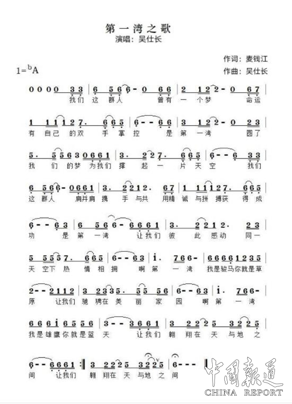 中国报道讯(通讯员岑福山 覃 源 麦国新)1月17日,由广西第一湾国际旅游股份有限公司股东会主席麦钱江作词,吴仕长作曲,吴仕长、龚丹演唱的《腾飞吧第一湾》荣获中国时代歌曲创作工程“让世界听见你”2022年度全国歌曲征集评选大赛活动创作银奖。中国文学艺术界联合会、中国音乐家协会、中国音乐制作人学会颁发了荣誉证书奖状。