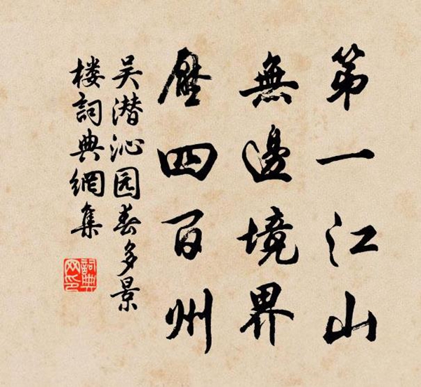 写景词 吴潜的写景之词中比较著名的有《满江红·豫章滕王阁》,该词作于淳祐七年(1247年)春夏,吴潜遭罢,改任福建安抚使,前往福州道经南昌时所作。“万里西风,吹我上、滕王高阁。”起笔着题,“万里”用得极有气势,“吹”极为生动,写出了登临高阁时的兴致。上阙景物写得重点突出、层次分明,又处处映照着《滕王阁序》,融通今古,拉长视野。这段景物描写明显地浸染着作者的情绪,如“征帆木未”就包含着前途渺茫之感,而“今犹昨”则蕴含着物是人非的深沉感慨,并且引出下片的抒怀。下面由近及远,回首往事。“岁月无多人易老,乾坤虽大愁难着。”他已入老境,有志难伸,而社稷颠危、国难深重。以固态体积状愁,既给人以形之大、又给人以质之重的感觉,想象奇特。上面都是登高临景惹起的对往事的回忆和无限慨叹,由此抒发出的郁闷不平之气,亦是自然而然、水到渠成。“向黄昏、断送客魂消,城头角。”结句哀思绵绵,刚柔相济,益显其沉痛悲郁。自王勃大作问世以来,吴潜此作未与时消没而留存至今,除了其写景的精要、生动、清畅外,就因为它真实地抒写了一个失意政治家的人生悲感和忧愤。仅就抒情写怀而言,该词也是沉郁动人的。