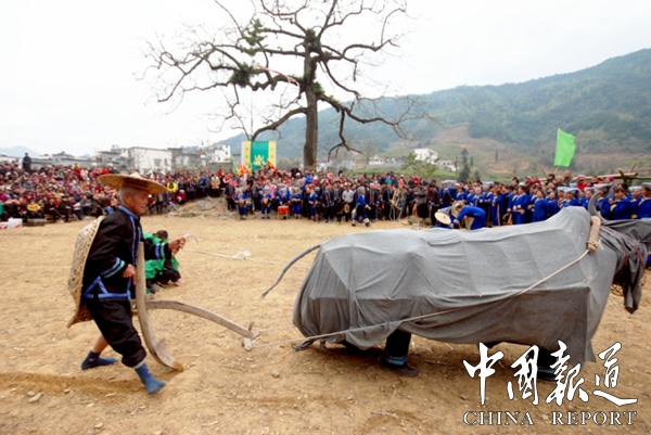 中国报道讯(岑福山 覃源)广西东兰县蚂拐节(也称蛙婆节,当地人把青蛙叫做蚂拐),应该是世界上最长的节日,这是一个流行于该县红水河流域的隘洞、长乐、巴畴、长江等乡镇的壮族村寨里十分古老的传统节日,这个节日要隆重地祭祀、埋葬青蛙来预测年景、祈求人畜兴旺、风调雨顺。每年从正月初一开始至二月初一结束,时间长达一个月,具体内容包括:找青蛙、孝青蛙、青蛙拜年、葬青蛙、青蛙歌会等仪式过程。