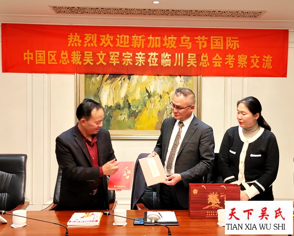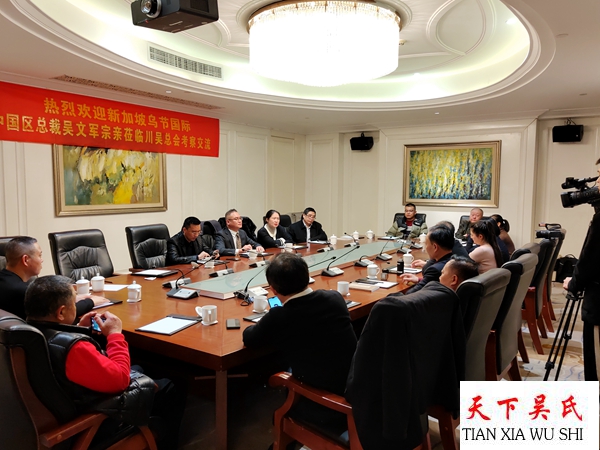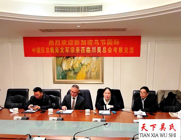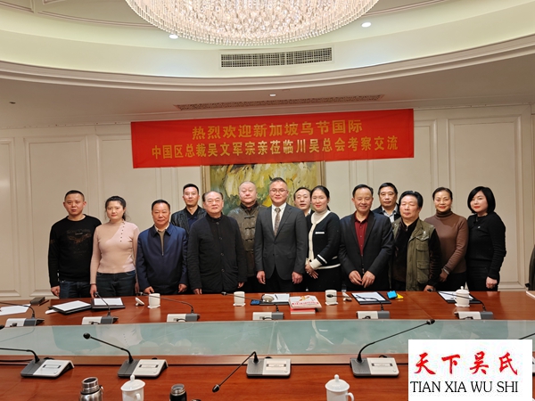 原武警四川总队副政委、川吴总会首席顾问吴万锦大校,川吴总会副会长、四川谢邦路桥工程有限公司董事长吴开国,川吴总会副会长、四川吴限文化传播有限公司董事长吴限,四川省大芯集成电路制造有限公司董事长吴峰及吴华、吴天亮、吴莎莎等代表对新加坡乌节国际中国区总裁吴文军的礼访表示热烈地欢迎并陪同合影。