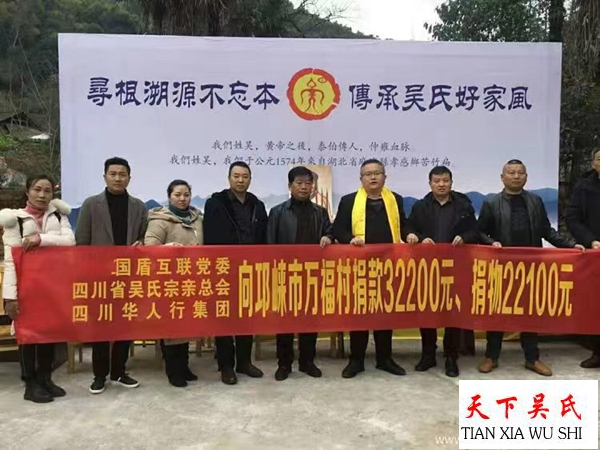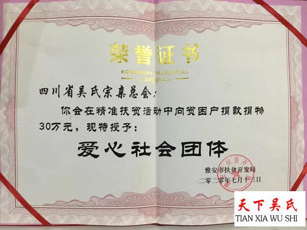 川吴会以身作则多次组织参加各类公益活动,捐款捐物达200余万元。常言道,有舍有得,付岀总有回报,截至目前,川吴总会诗书画院已收到来自海内外、港澳台及国内书画名家题赠墨宝200余幅。川吴总会还编辑出版《四川吴氏名人》系列丛书,《人民经济周刊》二十大特刊、《大国品牌》、《人民政协报》、《中国报道》等媒体对公司进行过翔实宣传报道广大市民对该会(公司)好评如潮。四川省雅安市人民政府扶贫开发局还授予该会《爱心社会团体》称号。