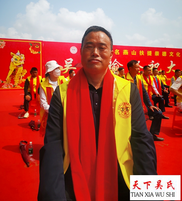 燕山墓园上,中华吴氏宗亲总会主席、天下吴氏网福建工作站站长吴文富,贵州吴氏宗亲吴文化研究会主席、世界至德总会常委常务副主席、贵州老吴台集团董事局主席贵州吴文化研究会主席天下吴氏网贵州工作站长吴学强,浙江吴文化吴文化研究会执行会长、天下吴氏网浙江工作站站长吴松金天下吴氏网广东珠三角工作站站长吴占标,执行站长吴昌禄及来自五湖四海的嘉宾代表身穿黄色服装,佩带红色绶带肃然而立。这里,一场盛大的祭拜大典即将开启。