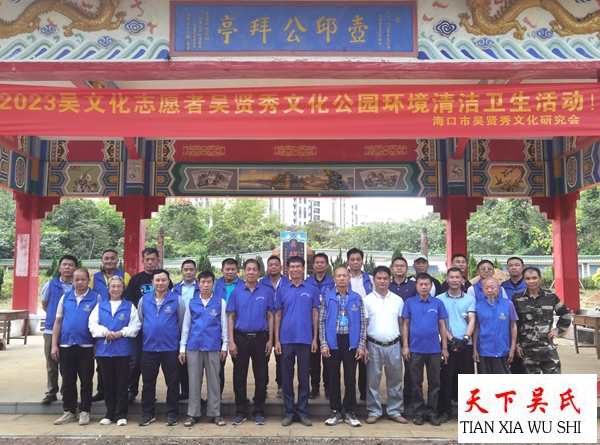天下吴氏网讯(海南工作站吴乾山报道)清明节即将来临之际,为了海内外,迁琼始祖吴贤秀公后裔子孙,创造优美的扫墓祭祀氛围。海南省海口市吴贤秀文化研究会积极组织文化志愿者对吴贤秀公墓(文化公园)进行全面清洁卫生。