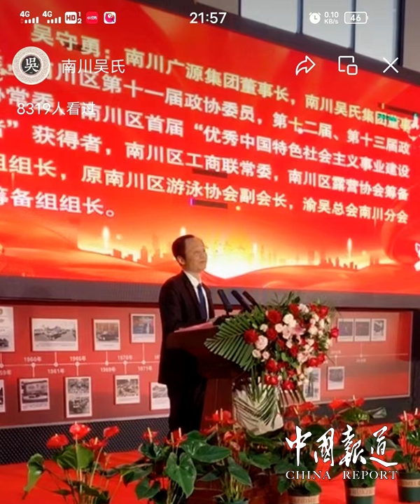 渝吴总会南川分中心会长吴守勇就职发言中说,今天我作为渝吴总会文化交流中心南川分中心主任(分会会长),感谢大家的信任是我前进的最大动力,也是我肩上沉甸甸的责任!
