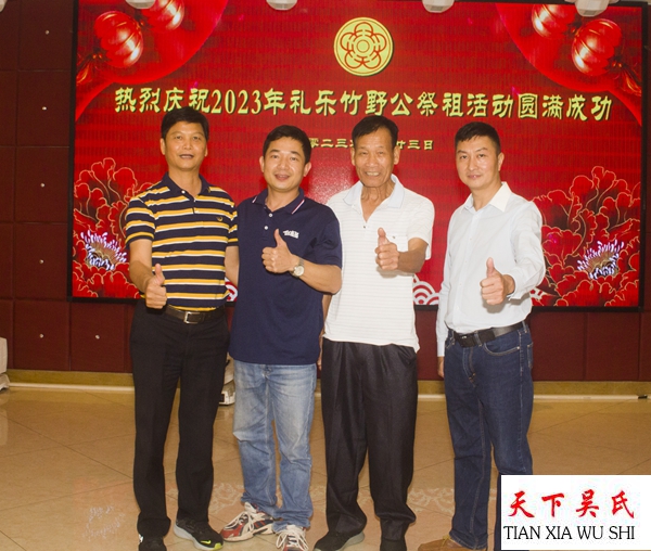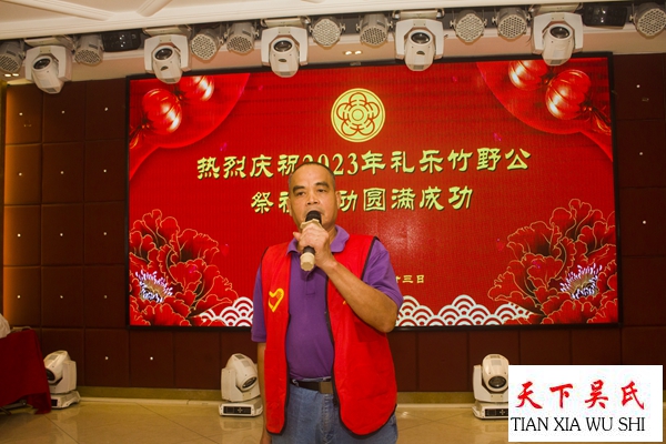 礼乐吴氏竹野公联谊会吴子培族长,为缅怀始祖吴仲贤的丰功伟绩,弘扬吴氏美德,务实奋进,团结一致,继续帮助有困难,有需要的吴氏宗亲,共同开拓吴氏宗亲更加繁荣。祝大家身体健康,生意兴隆、心想事成。