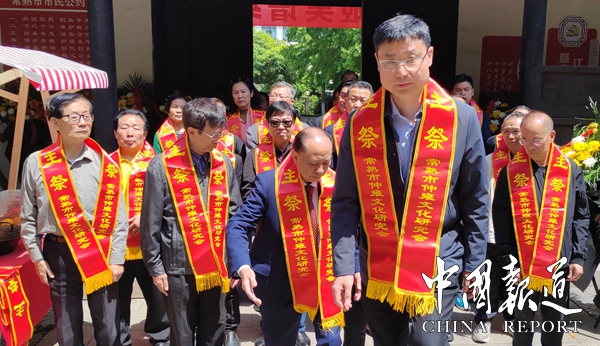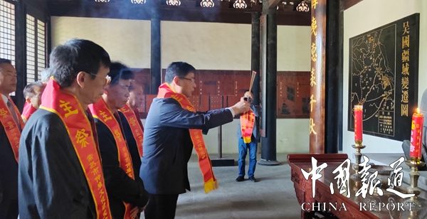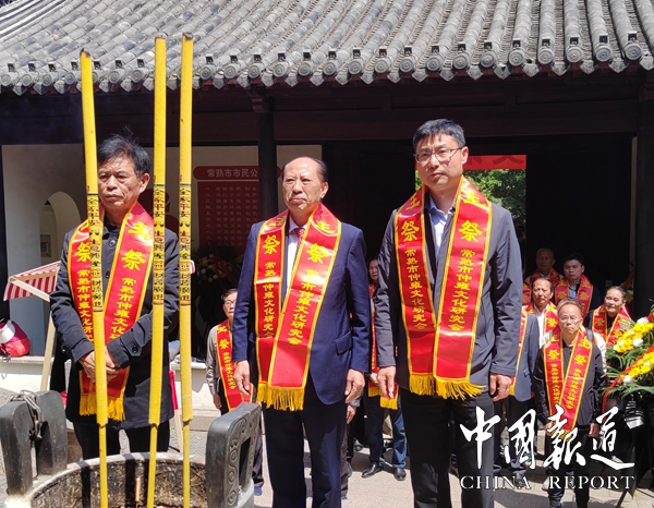 当天下午,常熟市仲雍文化研究会组团前后前往清权祠﹑新吴区梅村泰伯庙祭谱,并祭扫了仲雍公墓﹑敬香﹑敬献鲜花篮,吴多兴献上谱书行三叩九拜大礼,由常熟市仲雍文化研究会会长吴建明颂读祭文。