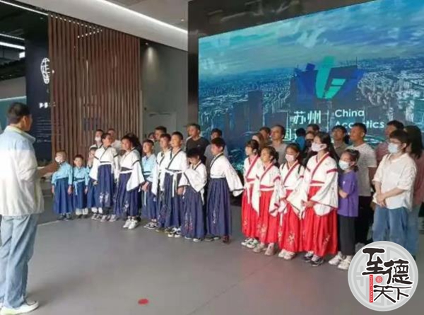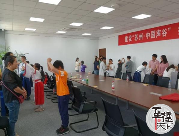 至德天下网讯5月14日上午,江苏常熟市仲雍文化研究会受常熟市德慧智教育志愿中心的邀请来到苏州中国声谷参加了一次关于“声音”科普与吴地“樂”治文化传承的教育公益活动。常熟市仲雍文化研究会会长吴建明和常务副秘书长吴韶丁、德慧智教育志愿中心李波老师、昆承小学学生及学生家长共有50人参加本次活动。