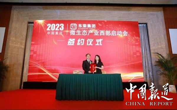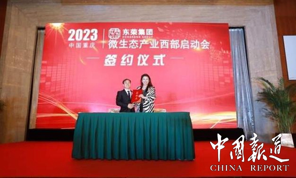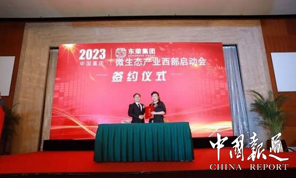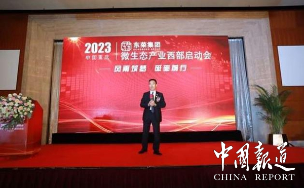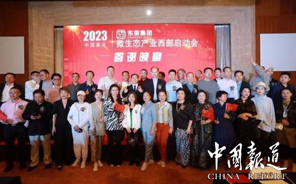 中国报道讯(吴蜀丰通讯员点赞哥)4月18日下午,在重庆雅诗特酒店举行了东荣集团微生态西部产业启动会。重庆市农委、乡村振兴局、中国西部研究与发展促进会成渝双城经济圈工作委员会主任郭辉及重庆市部分商协会负责人和新闻媒体应邀赴会。会议在《歌唱祖国》歌声中、鼓舞《旗开得胜》中拉开了启动会的序幕。