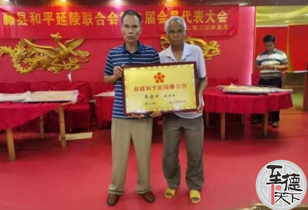 至德天下网讯5月18日,广西藤县和平延陵联合会第二届会员代表大会顺利召开,广西吴氏联谊会特别委派吴日胜副秘书长参加本次大会以表庆贺。