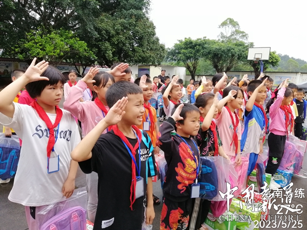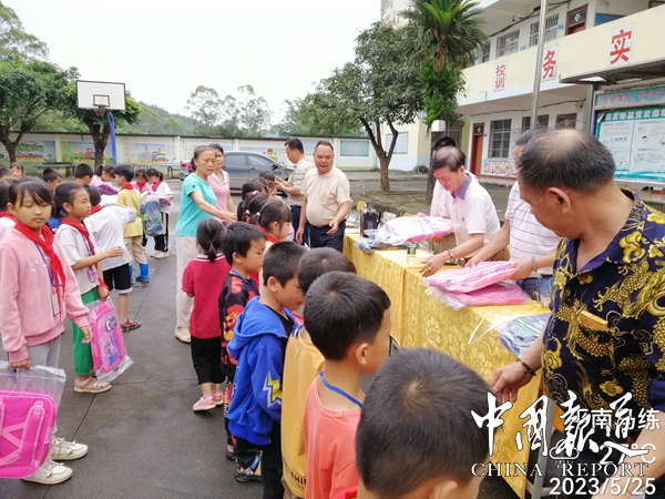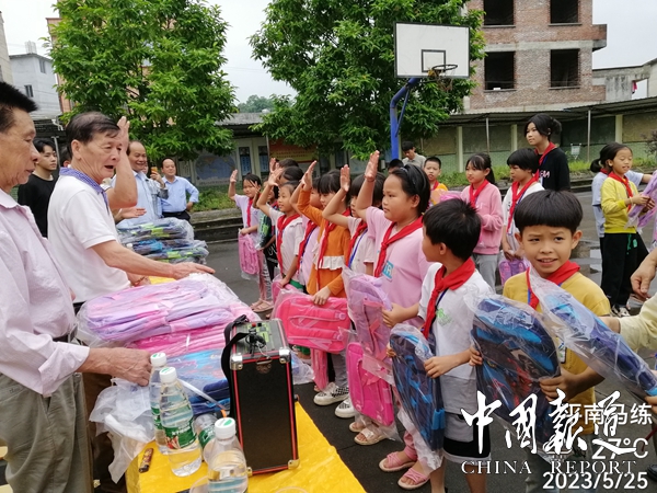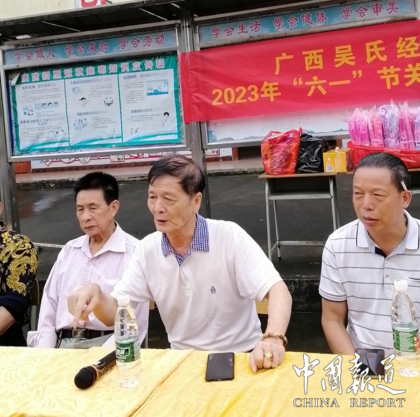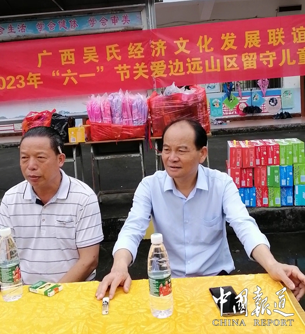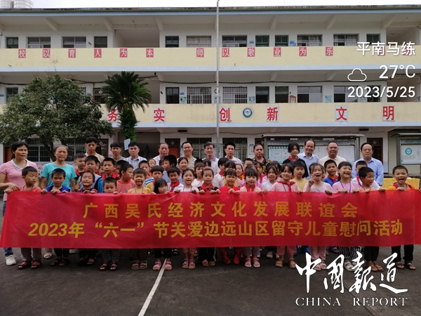 中国报道讯(吴蜀丰报道)5月25日,广西吴氏经济文化发展联谊会为弘扬中华民族传统美德,“用爱撑起蓝天,让心不再留守,让经典伴我快乐成长"庆祝六一儿童节活动,让边远山区留守儿童快乐生活,健康成长,面对困难,自强不息,努力学习成为祖国的栋梁,对平南县马练镇新河小学学生进行慰问活动。