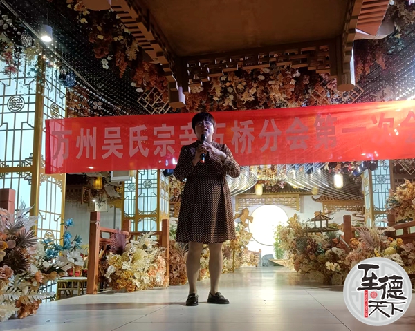 万州吴氏宗亲会发起人之一吴小波(候选秘书长)回顾了万州9.8万吴氏宗亲会的发展历程。万州吴氏宗亲会五桥片区负责人吴基华代表厚厨酒楼欢迎大家的到来,并对五桥片区工作作了汇报,主动为万州吴氏基金捐款400元。