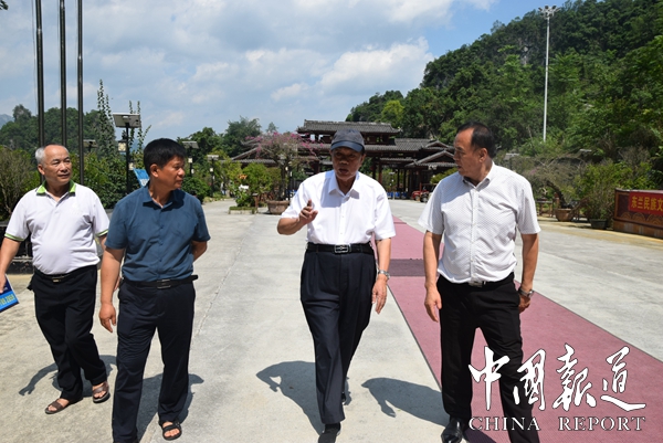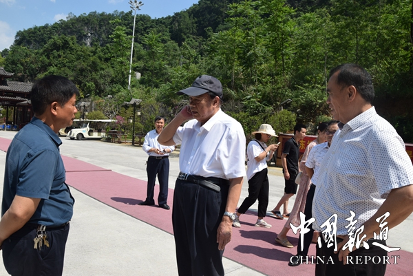 中国报道讯(通讯员 岑福山覃 源 韦举腾)6月3日,广西河池市政协原主席、市革命老区建设促进会原会长,市东巴凤(东兰县、巴马县、凤山县)区域一体化发展老干部顾问组组长覃绍明,冒着酷暑,来到广西东兰县国家4A级景区长乐宫检查指导工作。
