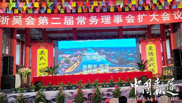 中国报道讯(吴蜀丰通讯员吴新强吴道林吴桂潮)6月3日上午,来自浙江省各地近200位的吴姓代表欢聚在温州市苍南县灵溪镇宕顶吴氏宗祠,参加浙吴会第二届常务理事会扩大会议。