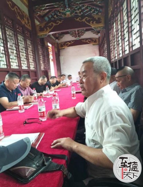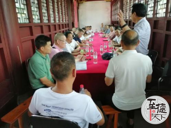 我们先到会议室开了一个欢迎短会,由吴久大执行会长主持会议。吴兆辉秘书长致欢迎词,并向永嘉上吴宗亲们介绍了吴畦纪念馆自2013年落成以来所开展的一系列工作情况,并希望宗亲们常来祖地走走,加强联系、互相学习、增进宗谊。上吴宗长吴大同也发表了热情洋溢的讲话,表示要感谢祖地宗亲的热情接待,今后更要互相往来,共同提升吴氏文化。并说:“今天,我们怀着感恩的心——感恩祖德,带上族谱,比对世系。我们都是吴畦公后裔,血脉相连,宗谊难忘。吴畦、吴畴公后裔出了那么多的进士,在浙南闽东是一面氏族文化的光辉旗帜,照耀着吴氏子孙……”