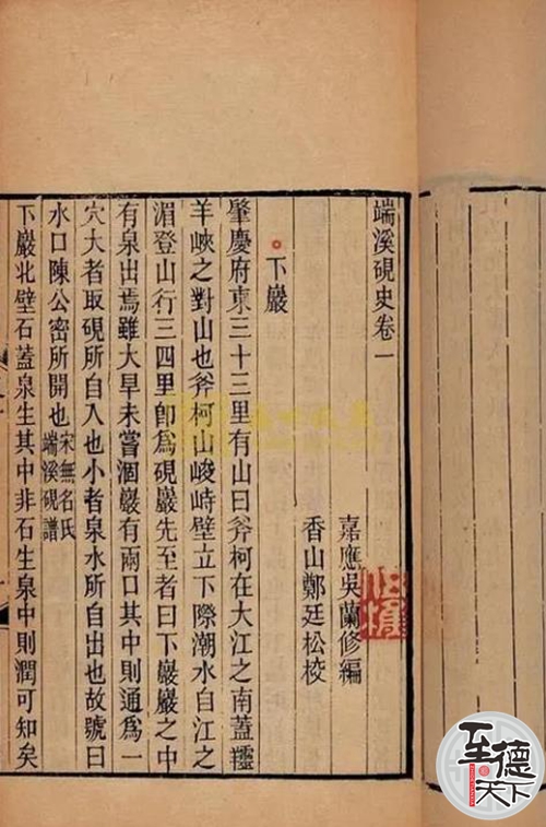 吴兰修这方“麒麟腾云砚”之石材为大西洞石第三层上等石肉料所雕制,石质肥润墩厚,制砚尺寸为黄金切割标准,构图严谨、刀法遒劲,雕工精美,规整大度,所雕麒麟之姿态、神情及祥云等的处理非制砚大家莫能,并且配有一个精美的红木天地盖砚匣,可谓弥足珍贵。此砚于 1986年为谢志峰先生在广州市文物总店内销购得,现陈列于肇庆市博物馆(阅江楼)之谢志峰捐赠古端砚陈列厅内。