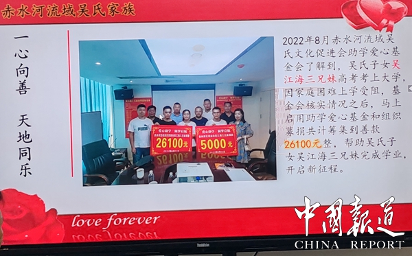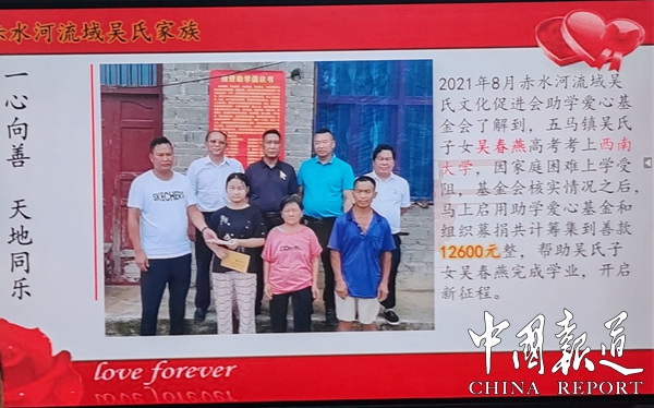 副会长吴金龙感慨地说,贵州荷花集团及“茅屋书苑”,创新经验值得借鉴,新朝阳医院为社会积极奉献精神值得肯定,尤其是赤水河吴氏文化促进会关心和筹集数万元支持贫困家庭及贫困学生大爱值得点赞。至德天下网总编吴蜀丰,至德天下网重庆工作站副站长吴陶勇全程报道本次活动。