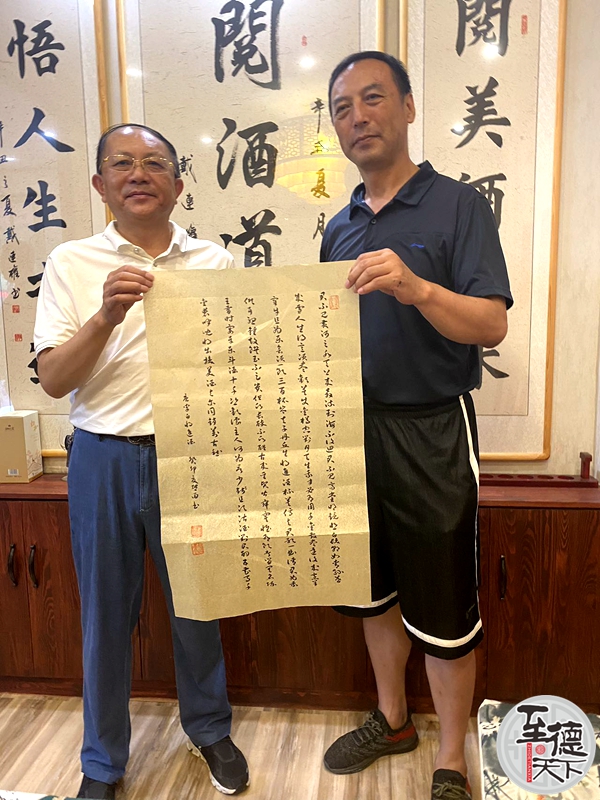 吴金龙安排在沈阳百年老店《马家烧麦》共进晚餐,出席晚宴的领导有和平区政协副主席,长白街道书记,和平区侨联副主席,秘书长等领导;并且赠送给荷花集团吴光才董事长,茅屋书院醉泉酒业集团董事长吴和洋各一幅字画做为纪念!