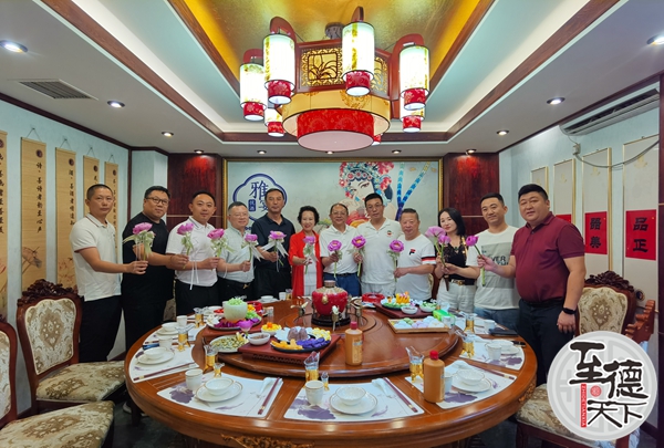 罗骥与吴和洋都是做酒文化的,他们一见如故并进行了亲切友好的交流,并且产生了很多共鸣,达成了优势互补相互帮扶的合作伙伴关系。为了欢迎茅台荷花集团董事长一行的到来,罗骥精心打造了一桌荷花宴,让各位大开眼界并拍照记录这餐美丽的荷花午宴!就餐前吴熙雨副会长兼秘书长赠送了吴光才一部他的大作和一幅书法作品。