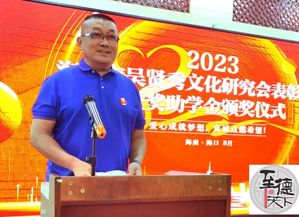 至天下网讯(海南工作站吴乾山报道)爱心成就梦想,真诚点燃希望。8月13日,海口市吴贤秀文化研究会会员表彰大会暨高考优秀学子奖助学金颁发仪式,在海口举行。来自海口市吴贤秀文化研究会第二届全体理事会领导班子和会员;以及诚邀嘉宾:世界至德总会董事局常委、副主度吴文元;世界至德总会董事局传统文化宣讲团团长李海波;海南大学林学院研究生导师吴庆书教授;本会名誉会长吴川富;荣誉会长吴名扬;还有今年高考海口吴氏优秀子女和家长120多人参加了会议。