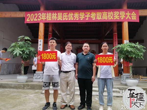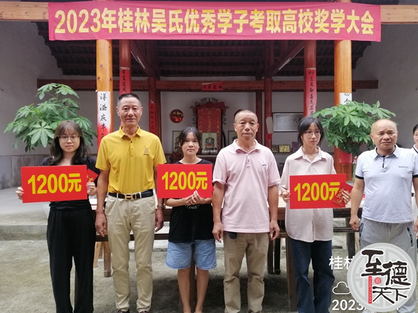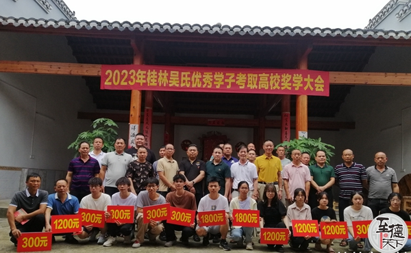 至德天下网讯 袅袅秋风起,最美人间秋。8月24日,广西桂林吴氏经济文化发展联谊会在临桂两江白岩村吴氏宗祠举办“2023年桂林吴氏优秀学子考取高校奖学大会”,到场的有广西吴氏联谊会吴茂柏会长,桂林吴氏联谊会吴首发会长等领导。