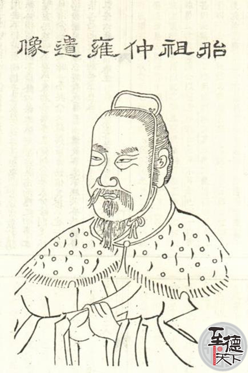 仲雍(又称虞仲、吴仲、孰哉),本系姬姓,是黄帝的18世孙,陕西岐山周族首领古公亶父的第二子。仲雍和其兄太伯为让父王实现灭商的愿望,让国南奔,落脚于无锡、常熟一带,建立勾吴王国。他们把王位继承权主动让给弟弟季历,季历生子姬昌是为周文王,为灭商建周奠定了基础。
