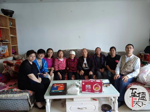 至德天下网讯(重庆万州分站吴汉明报道)天下吴氏一家亲!万州吴氏一家亲!中秋前夕,渝吴总会万州分会筹备组在侯选会长吴浚铭(车马行汽车修理厂董事长)带领下,走访慰问了万州吴氏90岁以上健在的20位宗亲们,包括1位100岁老寿星:白羊镇吴发俊(1923.4.22)、1对90岁白金婚吴氏好夫妻:九池街道吴启兵(1930.2.11)和丁后芬(1932.7.7)和11位90岁吴氏好媳妇。慰问100岁老寿星礼品有月饼、牛奶、大米和500元人民币。万州吴氏健在100岁老寿星吴发俊介绍了他百岁长寿秘决:心态好,不生气,喜欢吃五各杂粮和甜食!