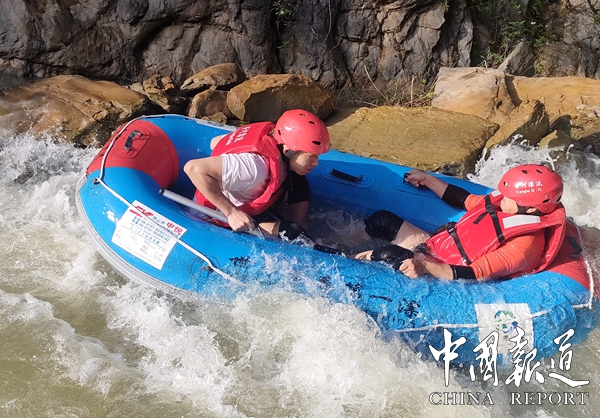 在东巴凤(东兰县、巴马县、凤山县)世界长寿之乡金三角核心区的东兰香河漂流景区,每天人满为患,广西第一湾公司为感谢游客的支持,门票由一张180元,打折低至15元。这里海拔583米,落差70多米,河两岸生态环境保护良好,山、水、石自然景观构成了一幅优美的山水画廊,游客从清凉的水花中一跃而过,顺着河流一路漂荡,一路尖叫,在山、水、林间感受漂流带来的别样感受。穿梭在绿水青山间,静谧的峡谷中只听见水流的“哗哗”声和船桨拍打水面的声音,尽享青山绿水间的惬意清凉,别有一番趣味。