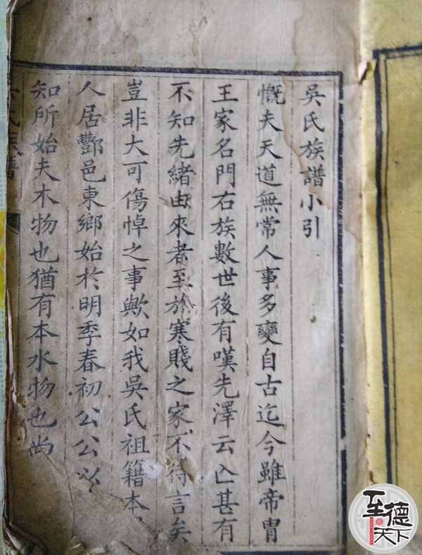 慨夫天道无常,人事多变,自古迄今雖帝胄王家名门右族数世后有叹先泽云止甚有不知先绪由来者,至于寒贱之家不侍言矣,豈非大可伤悼之事,歟如我吴氏祖籍本属人居丰邑东乡,始于明季春初公,公以不知所始夫木物也独有本水物也尚且如是宣公之前无所始,父老传闻。源吴自文字罕观徒嗟世代无稽吾族,幸如此其由明季之乱至此耶,亦書識無族至此耶吁良可慨矣,然今不幸有慨于昔焉,可今後不幸復有慨於今乎爰集父老子弟,筹谋将历代性字及善言懿行刊侍無窮則,木本水源之思自今至于後日亦可稍慰焉