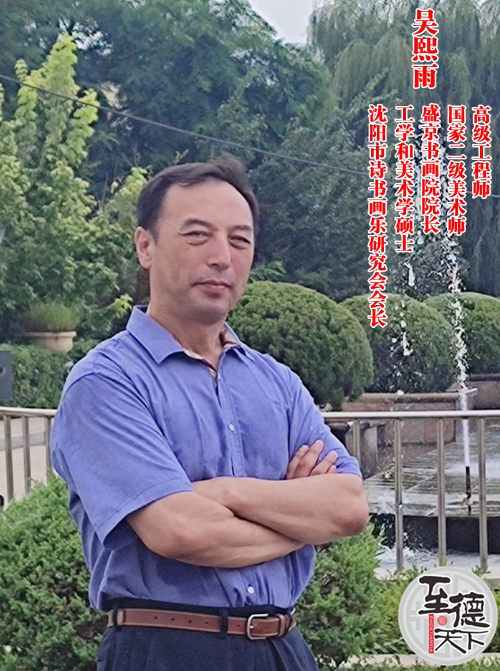 【作者简介】吴熙雨,国家二级美术师,高级工程师,工学和美术学硕士,毕业于鲁迅美术学院国画专业,沈阳师范大学书法专业等六所大学,从小师承美术大家徐甲英老师,书法大家徐炽,中医大家张艳、卢秉久博导等众多名家。中书协辽宁新闻报道员和评论员,民建中央文化委委员,辽宁省文艺评论家理事,辽宁省美术家协会会员,辽宁省书法家协会会员,沈阳市诗书画乐研究会会长,盛京书画院院长,泰国格乐大学艺术学院外聘硕士研究生导师,担任沈阳科技学院等多所院校外聘艺术专业教师,编撰《书古文》等多部专著,在国家重点核心期刊等多部报刊杂志上发表书画类论文二十多篇,书画多次参加国家及省级展览,获第七届辽宁文艺评论奖(书画类唯一奖)。