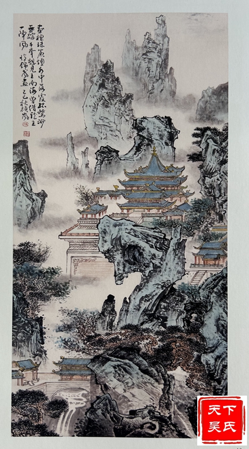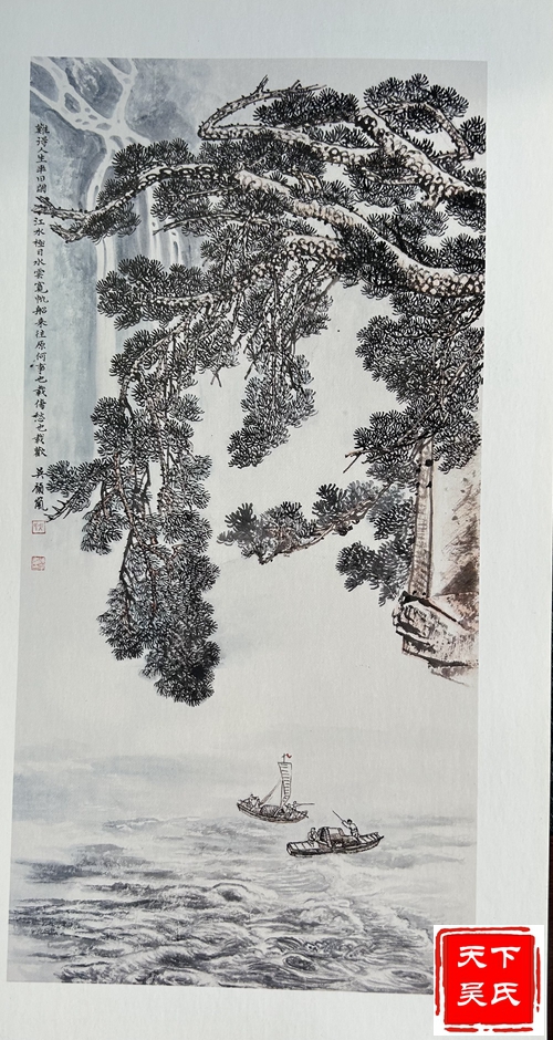 吴祯岚功底深厚,“师古而不泥古,具有清越、华滋、温馨、磅礴的时代气息。”在他的笔下山水松柏、草木幽谷、小桥流水,风趣别致,令人回味无穷。连绵不断的山峦云雾笼罩时起时伏;那耸峙的峰峦、险峻的崖壁简直就是一把锋利的宝剑,直插蓝天里;千峰万嶂、重重叠叠,耸入云端,宛如万幅壮锦,仿佛天外来客;那高矮参差,前拥后簇的山峰时笑时眠。水时而潺潺细流,时而飞流直下,时而汹涌澎湃,掀起万丈海浪;近处树木苍阔葱茏,荡气回肠;远处迭峰错落,气势磅礴;那深邃迷离的幽谷,给人空朦冷峻之感;小桥流水人家,气韵充盈、飘逸洒脱,让人享受在欢快愉悦之中。