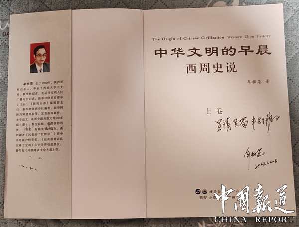 《中华文明的早晨——西周史说》中国世界图书出版社出版。全书上下两卷,共46万余字,13章250多大节,130多幅图表,314条文献注释,融史论、编年、记传、图、表为一体,是国家历史文献类文图综合型重点专著。该书有四大看点:将西周历史与五大文明古国做比照分析;对沣镐二京渊源布局做全面系统调查考评;对先周和西周重大迁徙的现场探寻;对西周历史疑案泰伯奔吴的系统解读。本书尤为耐读的是将西周每个重大历史节点与巴比伦、古埃及、爱琴海和古印度等文明做横向扫描、比较分析,论述西周和世界文明的差异、优势及共生共荣的历程,探索史学界一种新的述史方式。现中央新影集团、日本NHK电视台等已经根据本著改编摄制文献史诗《西周大国》五集纪录片在海内外播出。