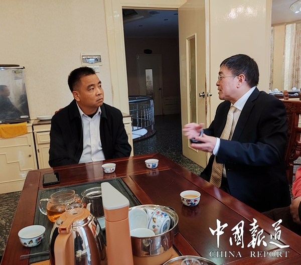 中国报道讯(吴蜀丰报道)12月2日,广东南雄市委书记柯建忠在南雄迎宾馆会见了农民日报社驻广东记者站站长、历史文化学者吴砾星一行,双方就研究利用珠玑巷姓氏文化资源促进南雄高质量发展进行了交流。