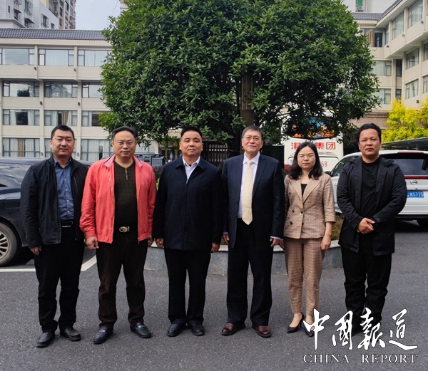 广东南雄市委书记柯建忠(左三)与农民日报社驻广东记者站站长吴砾星(左四)一行合影留念