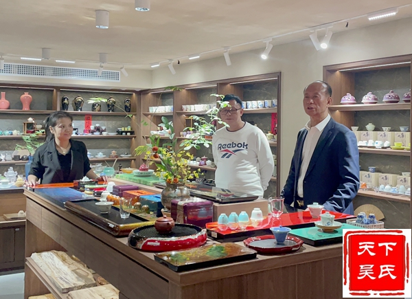 在秘书长吴君君陪同下,吴文富、吴昌禄前往海吴总商会常务副会长单位“永利汇生活馆”参观了内茶器茶具琳琅满目,品类齐全的生活馆后前往海吴总商会常务副会长吴汉成的“福建芳荣贸易有限公司”。芳荣贸易公司展示的酱香金沙古酒系列及酒库里储存的澳洲原装原瓶进口维诺特葡萄酒等多个品种。