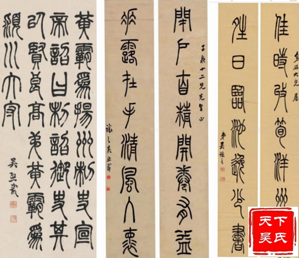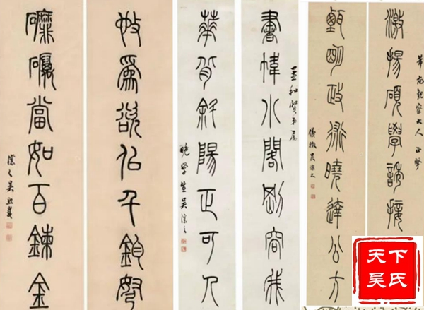 吴熙载他长期寓居扬州,以卖书画刻印为生,晚年落魄穷困,栖身寺庙借僧房鬻书,潦倒而终。吴煕载是包世臣的入室弟子。其行草学包世臣,篆隶及篆刻则师法邓石如。尤其是篆刻,不仅自成面目,而且进一步完善了邓派印风,后来学邓派印者,多从吴让之入手。吴煕载以篆书和隶书最为知名。其篆书点画舒展飘逸,结体瘦长疏朗,行笔稳健流畅。古朴虽不及邓石如,而灵动典雅似则过之,颇具妩媚优雅之趣,在晚清书坛享有很高的声誉。对后来的赵之谦、吴昌硕均有影响。