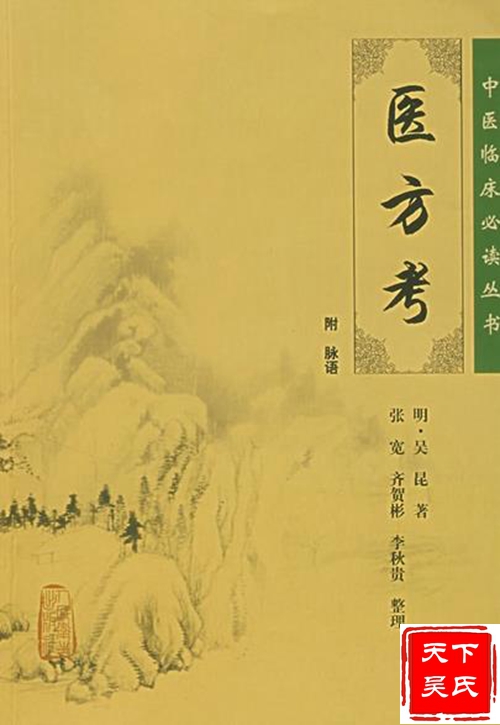 方剂之贡献 吴氏壮年曾致力医方研究。这是因为吴氏从医十八年后,贽见过一些医家,其中什九既昧于经论,又多不谙方旨药性,故疗病每使病人难愈。为此吴氏发志取医方七百余首,按证排列,逐方发其微义,书称《医方考》,计六卷。这是一部从临床实用着眼的医方。全书分七十二门,包括内、外、妇、儿、五官各科证候。各门首叙病因,次列方剂,再列适用证候及用法、注意事项等。尤其值得重视的是每方后所附之方解,考证精详,文字清晰,很见功力。使读者不仅易于领会方旨,且可便于掌握治病用药,方剂加减之要领。